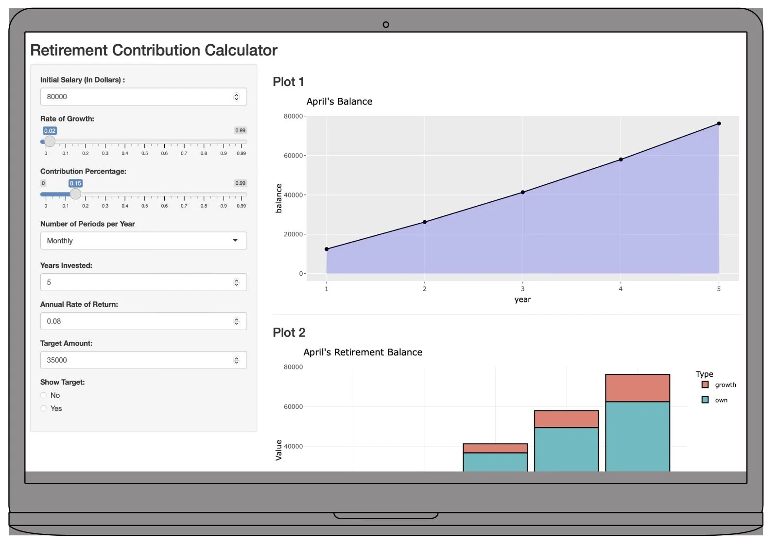Retirement Contribution Calculator - User-friendly retirement plans calculator incorporating user inputs to calculate future savings growth