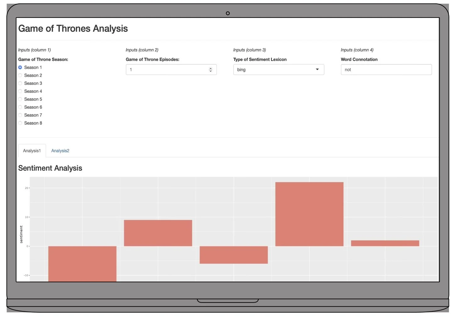 Sentiment Analysis - Interactive data visualization for three different sentiment analysis based on the text from Game of Thrones