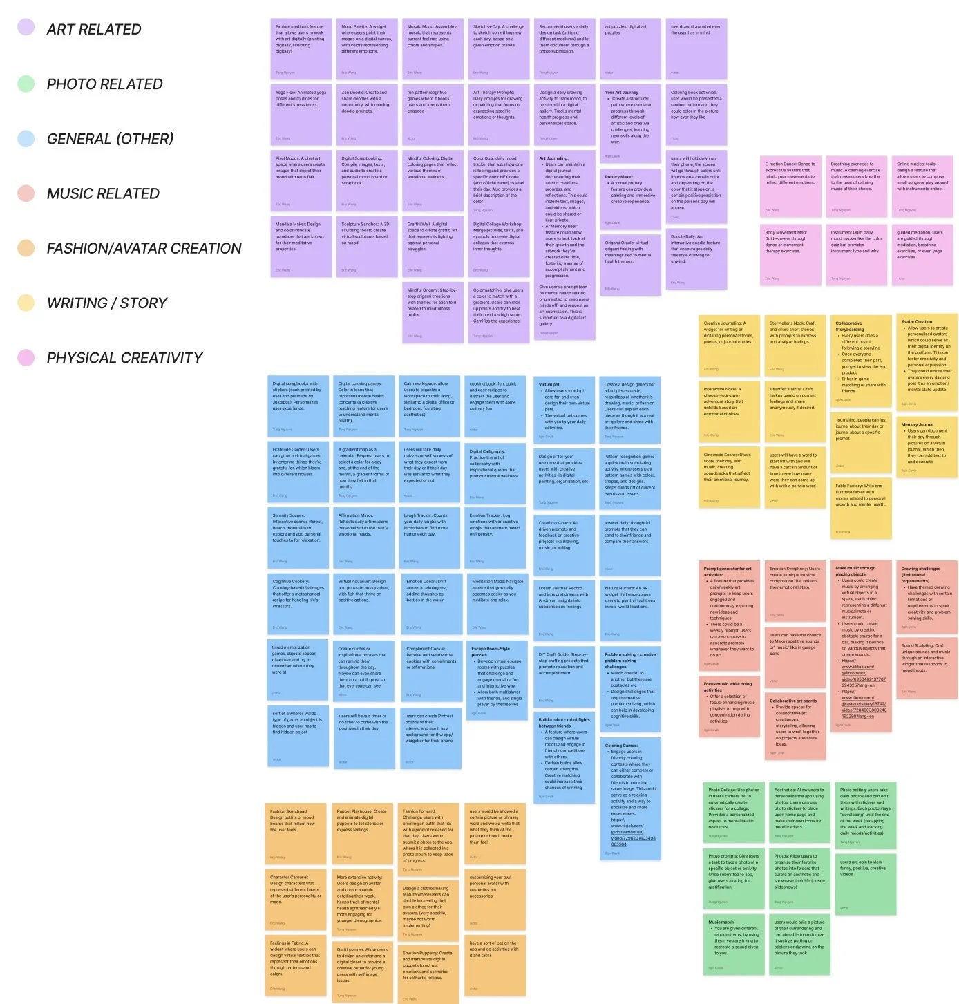 During our creativity process, the team categorized widgets based on different mediums of creativity, ensuring our designs would be most accessible to our diverse user demographic.