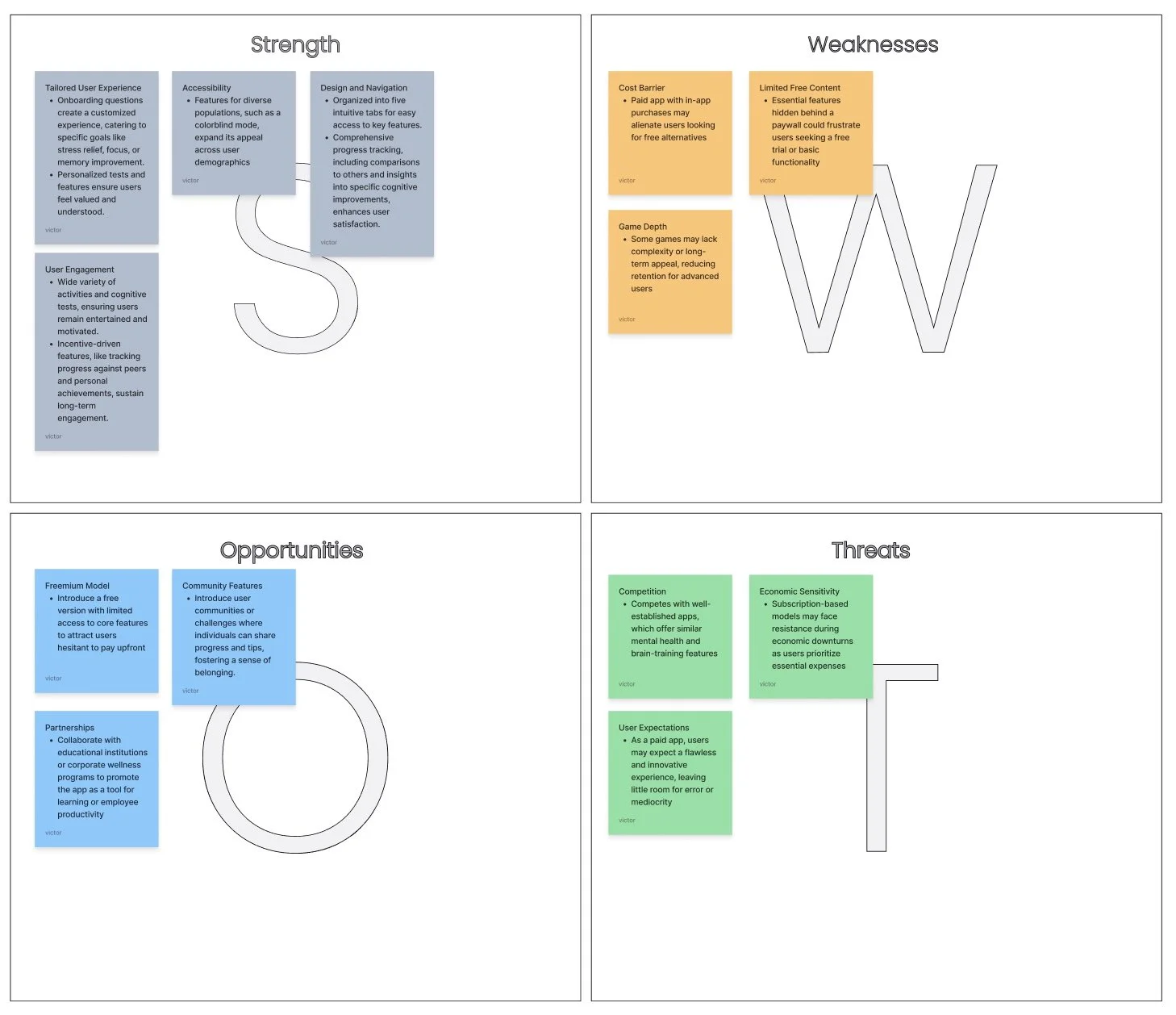 To better understand the use of mental health apps in different situations, we analyzed the interactions of self improvement aspects in other apps like impulse using a SWOT analysis